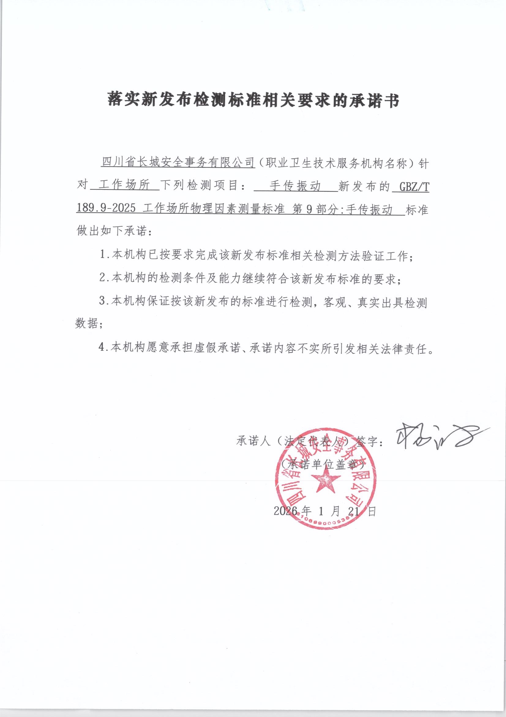 落实新发布检测标准相关要求的承诺书-呼吸性粉尘
